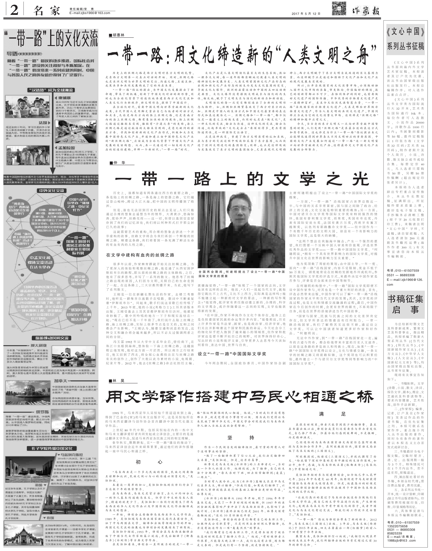 補發(fā)5月12日報刊電子版。本期一版文事新聞,分別有中國通俗文藝研究會第七屆會員代表大會在京召開,本社社長被選為理事。房國東家訓集《心田留與子孫耕》在京舉行研討會。山東省安丘市詩詞楹聯(lián)協(xié)會成立大會召開。近日“一帶一路”高峰論壇在京舉行,本期選編了與“一帶一路”相關(guān)的文章,側(cè)重介紹了“一帶一路”在文化與文學上帶給我們的影響。三版專版推介了張文臺上將賦詩鞭策“戰(zhàn)士詩人”蔡詩華兄妹四人的相關(guān)文章及詩書往來。四版主要選發(fā)了一批學生作品和攝影詩作品。詩書在心,愿大家新的一周工作愉快!