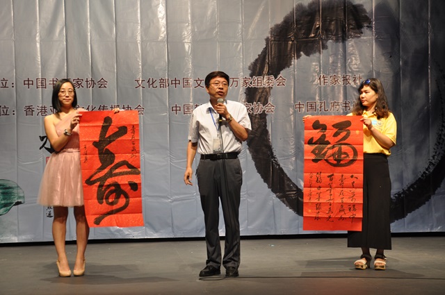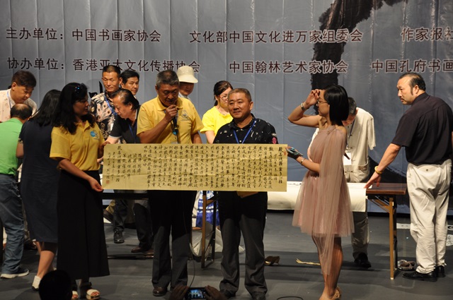 獲獎(jiǎng)藝術(shù)家向頒獎(jiǎng)盛典組委會(huì)贈(zèng)送書法墨寶(部分),為祖國和香港特區(qū)的發(fā)展送上深情祝福