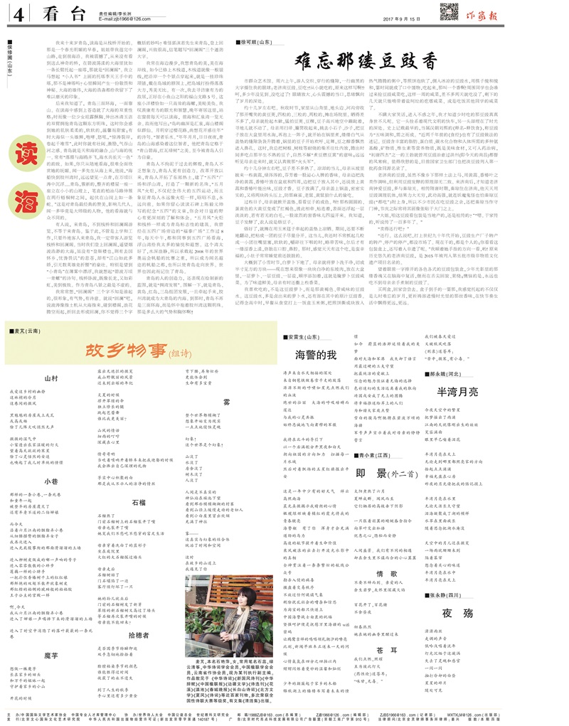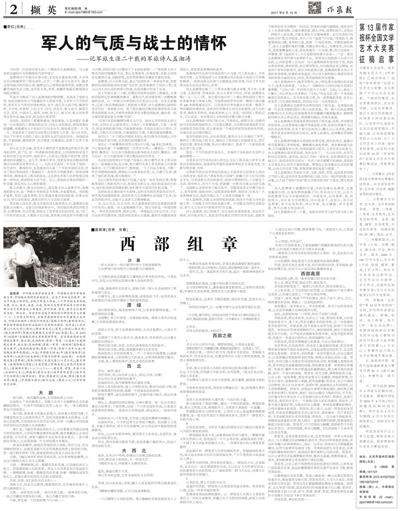 核心提示:《作家報(bào)》2017.9.18第37期(總第1075期)一版《新聞資訊》二版《擷英》三版《評論 校園》四版《看臺(tái)》