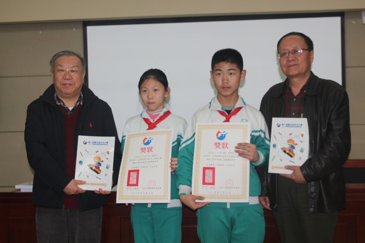 海淀作協(xié)理事李文忠、閆拓時為獲獎同學頒獎