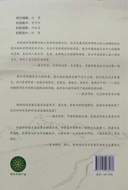我這本冊子,在出版和編排的過程中,感謝中國作協(xié)副主席,陜西省作協(xié)主席賈平凹先生為我題寫書名;感謝著名作家、書法家,武功在外的文化名人雷濤先生為我作序;感謝著名作家、陜西教育出版社原總編、武功在外的文化名人孫毅先生撰寫的序言和提供的幫助;感謝陜西教育出版社副總編沈勇先生擔(dān)任責(zé)任編輯,他在百忙中抽出時間逐字逐句把關(guān)校稿;感謝廢寢忘食一字一句改稿糾錯的王青歌、張會鴿、馮勝利、司紅霞、李戰(zhàn)松、朱鵬等文友的辛勤付出。更要感謝,我在出版這本冊子的時候得到了縣委縣政府和縣財(cái)政局主要領(lǐng)導(dǎo)的關(guān)心支持,在此我一并感謝,還要感謝為支持我寫作默默付出的家人。盡管這本冊子已經(jīng)問世,可是由于本人水平有限,難免存在這樣或者那樣的缺陷和缺點(diǎn),敬請各位讀者在閱讀的過程中,提出寶貴的批評意見,以便在以后成書的過程中加以改進(jìn)。