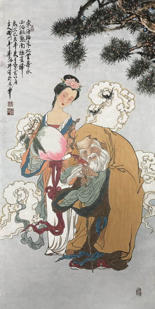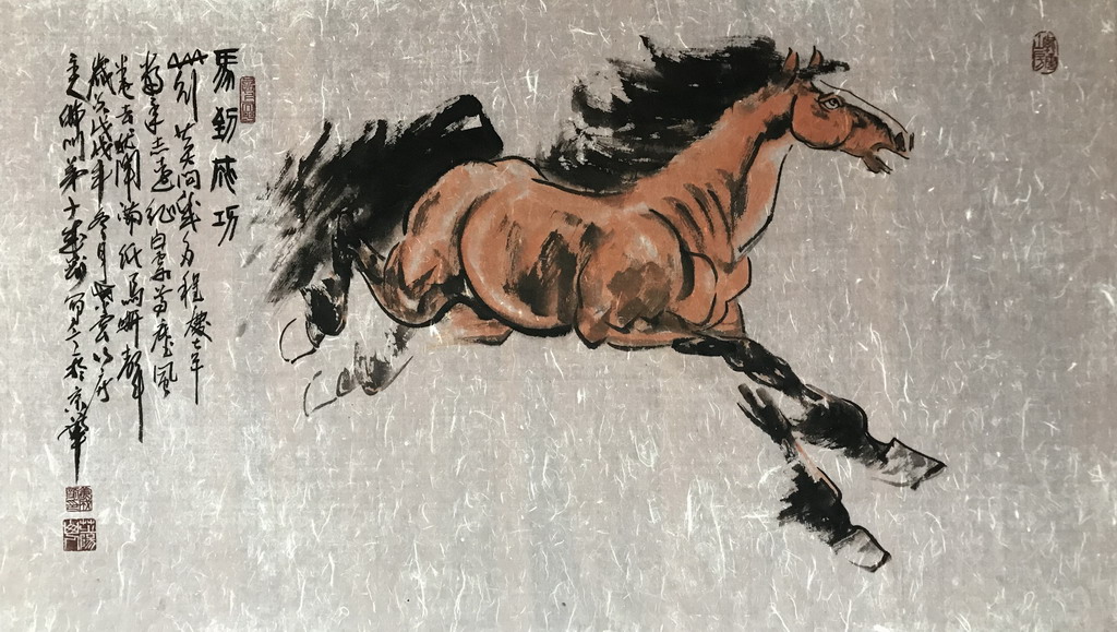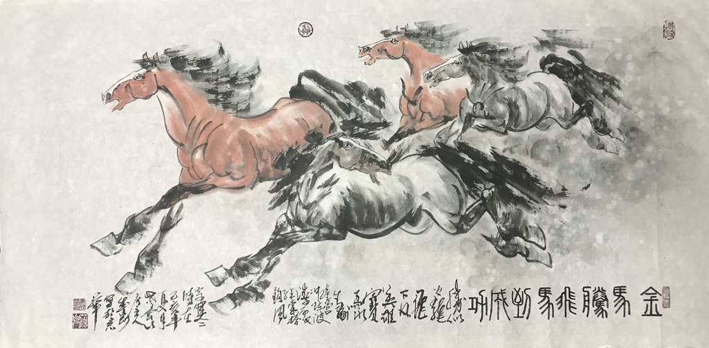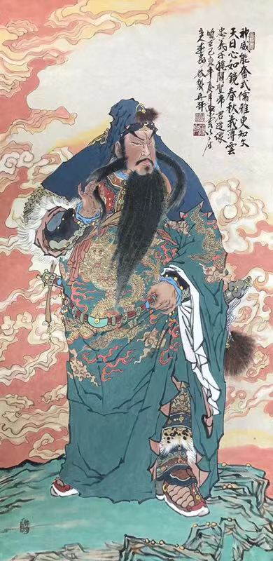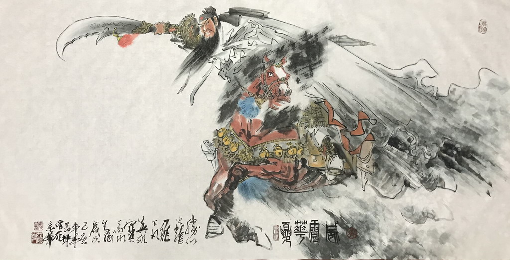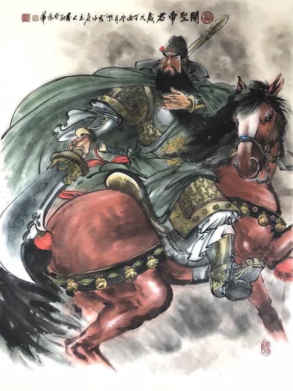 姜成剛的得意作品有壽星、十八羅漢、鐘馗、赤兔馬、關(guān)公等這些非常有特色的歷史文化符號。每一幅作品都是他精心打磨的精品,他精益求精的態(tài)度,讓他在藝術(shù)的道路上走得更遠(yuǎn)。他很少去刻意宣傳自己,別人夸他作品好,他常常是靦腆一笑,說喜歡就好。他把精力都用在提高創(chuàng)作水平上,他的俠肝義膽英雄風(fēng)范,來自他有著扎實的武術(shù)基本功,他的畫作瀟灑也來自他的氣魄。作品透露出幾分軍人的威力,作品構(gòu)圖心思細(xì)膩天馬行空,所以繪畫在他的筆下龍飛鳳舞。其實每一幅作品不只是畫人物,畫家也是在畫心中的自己,在畫自己心中那圣潔的凈土和藝術(shù)人生。