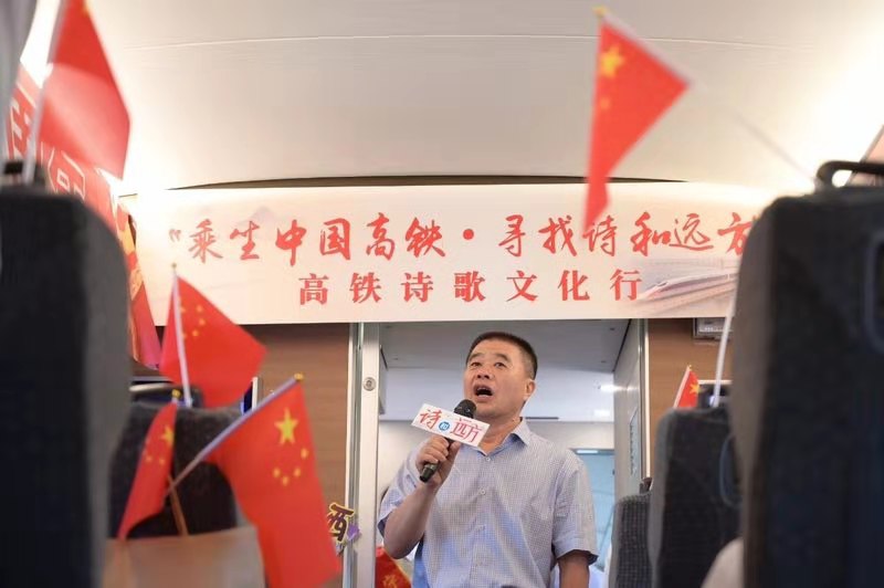 此次“乘坐中國(guó)高鐵·尋找詩(shī)和遠(yuǎn)方”活動(dòng),邀請(qǐng)了全國(guó)知名詩(shī)人、評(píng)論家、朗誦家與旅客共同朗誦國(guó)內(nèi)外著名詩(shī)歌、原創(chuàng)詩(shī)歌,還組織了“我和我的祖國(guó)”快閃活動(dòng)。并在現(xiàn)場(chǎng)發(fā)放小國(guó)旗,贈(zèng)送《詩(shī)刊》雜志。以詩(shī)意的內(nèi)容,豐富的形式,進(jìn)一步推動(dòng)促進(jìn)廣大詩(shī)人與人民同心、與人民同行,向新中國(guó)成立70周年獻(xiàn)禮。