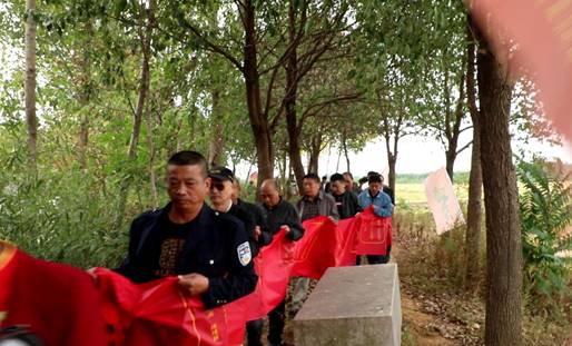 天門(mén)黃氏宗親聯(lián)誼會(huì)副會(huì)長(zhǎng)黃中華帶領(lǐng)大家開(kāi)始走龍堤