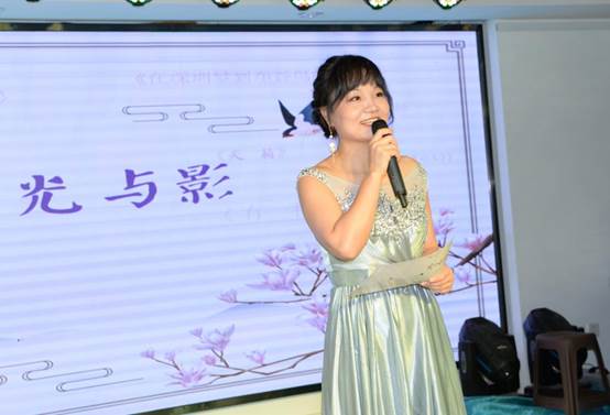 詩會主持人陳璽如朗誦朱蔓青的作品《光與影》。