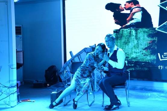力銘與楊柳合作演出朱蔓青的詩劇《回到2046的列車》。