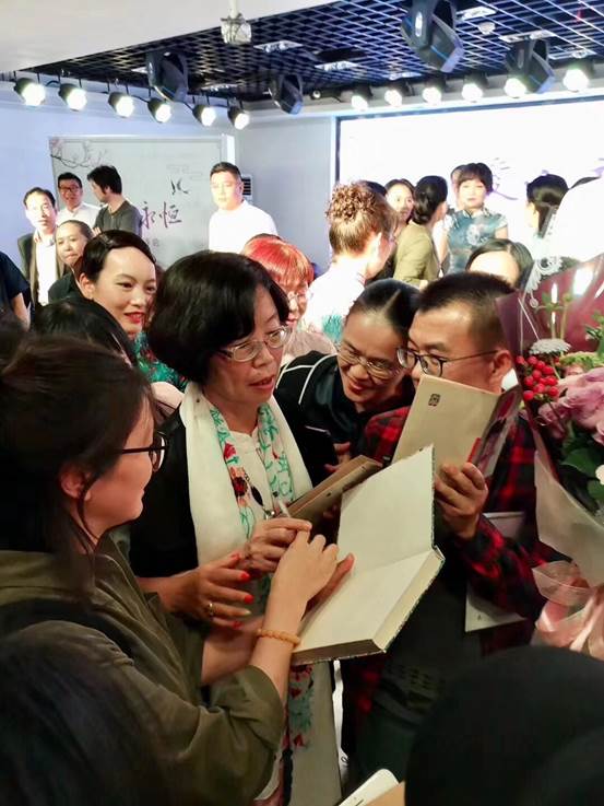 詩會演出結(jié)束后舒婷老師的粉絲把她圍得水泄不通,索求簽名