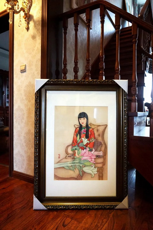 施施然畫(huà)作:《手捧百合的女子