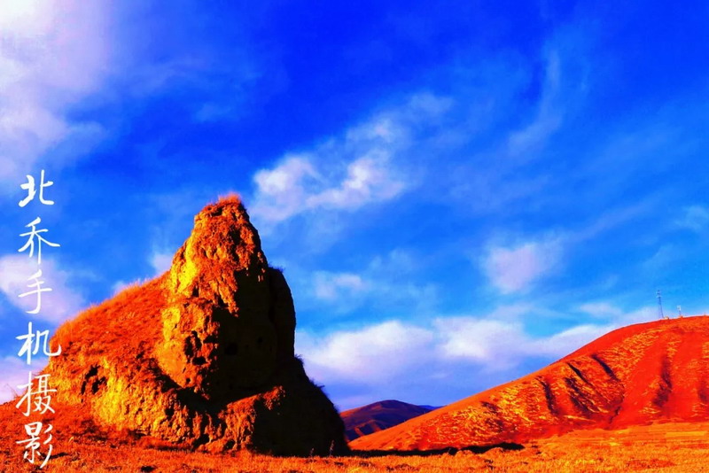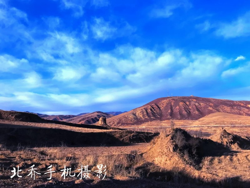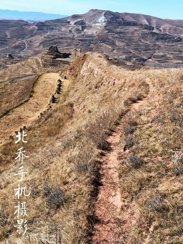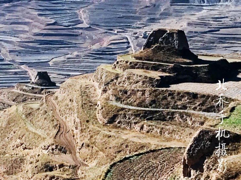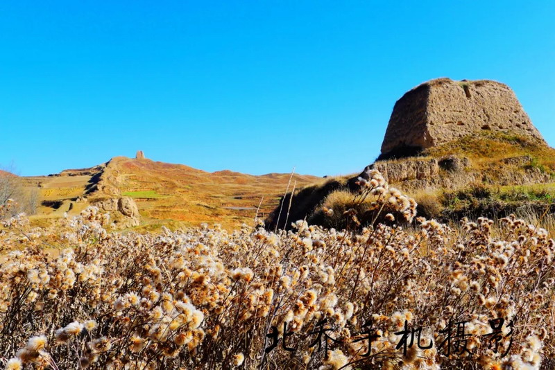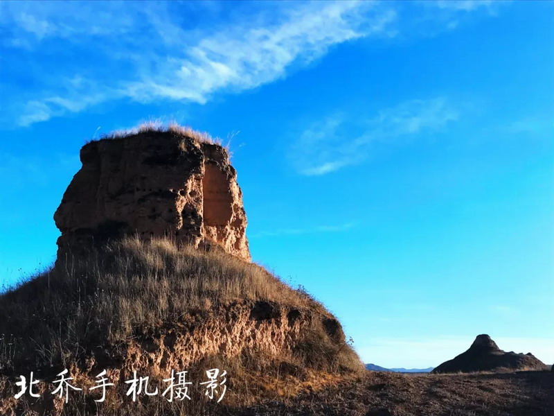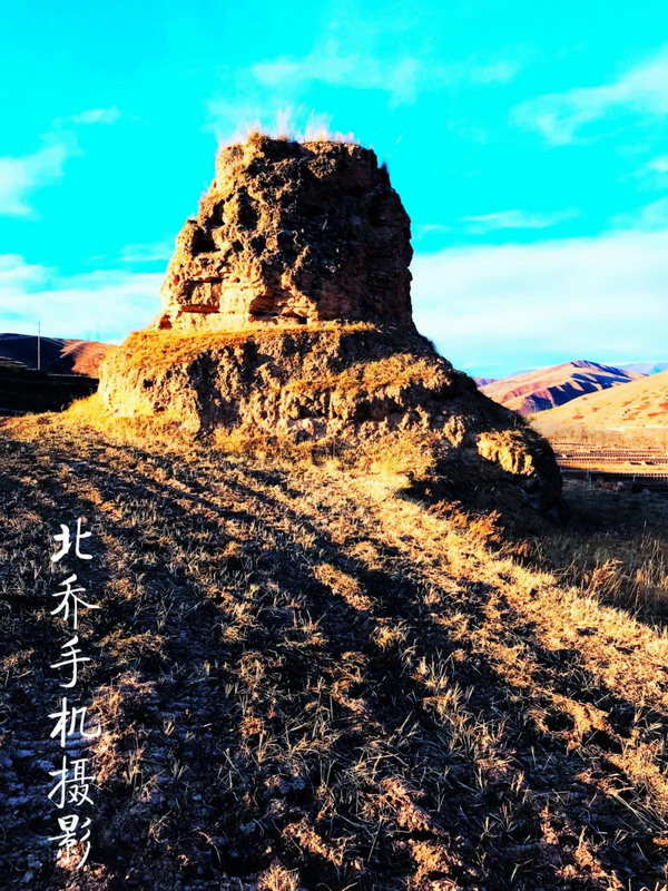 在海拔近3000米的高原上,沿著雜草叢生的小路登上這不足百米高的地方,多少有些吃力。以往走在曲折的小路上,只要時(shí)間寬裕,我總會(huì)緩慢而行,讓雙腳踩出詩意。這一次不同。再有情調(diào)的小路,我也不在意,我的目標(biāo)在高處的平臺(tái)上。過程是迷人的,如果對(duì)目的地懷有強(qiáng)烈的渴望,路上的時(shí)光,就會(huì)被壓縮再壓縮,沿路的風(fēng)景都將視而不見。我像戰(zhàn)士搶占山頭一樣,急切地行走。這個(gè)叫牛頭城的地方,位于臨潭縣古戰(zhàn)鄉(xiāng)的龍首山上。此前,我曾經(jīng)數(shù)次經(jīng)過。遠(yuǎn)遠(yuǎn)望去,配得上壯觀二字。秋季時(shí),群山蒼茫,幾個(gè)形態(tài)各異的土堆格外醒目。我總把它們看成巨大的草垛。渾身金黃,堆起莊稼人一年的期盼。這樣的草垛,總是給人踏實(shí)、充盈之感,絲毫沒有咄咄逼人之勢。而在春夏之時(shí),它們就換上一身綠衣,仿佛巨型莊稼。無論什么時(shí)候,它們都像海中的小島,大河邊的碼頭。曾在書籍中與牛頭城多次相遇。西晉永嘉末(公元313年),吐谷渾(北方少數(shù)民族之一的鮮卑族慕容氏族吐谷渾部落)占據(jù)洮州今舊城、古戰(zhàn)等地。北魏孝文帝元宏太和十五年(公元491年),吐谷渾在洮州修筑了牛頭城和洮陽城等。聽聞從高處看,因城廓為倒梯形,前低后高、上寬下窄、型如牛,故意稱為牛頭城。只是我難尋一高處俯瞰。當(dāng)然,我也不愿意居高臨下看待它。這多少有些藐視之嫌。我喜歡走近它。