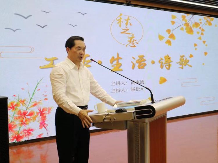 ▲黃惠波在詩(shī)歌講座上分享“工作·生活·詩(shī)歌”