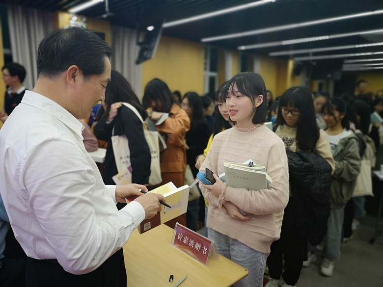 當(dāng)天演講中,黃惠波激情飛揚(yáng),詼諧幽默,尤其他能完整背誦自己的作品及中外經(jīng)典文學(xué)作品篇章,其情懷之率真,時(shí)時(shí)讓人擊節(jié)稱(chēng)嘆。在提問(wèn)環(huán)節(jié),面對(duì)學(xué)生關(guān)于寫(xiě)作、生活的問(wèn)題,黃惠波皆耐心回答。他表示,詩(shī)人是文學(xué)家中的文學(xué)家。當(dāng)一名詩(shī)人首先要有純潔的感情,然后要有寬廣的胸懷。“詩(shī)歌應(yīng)該撥人心弦、感人肺腑、發(fā)人深思、催人奮進(jìn),也就是要觸動(dòng)人、感動(dòng)人、驚動(dòng)人、行動(dòng)人。”他強(qiáng)調(diào),詩(shī)歌或說(shuō)文學(xué)最后都要催人奮進(jìn),給予人們生活的希望和動(dòng)力。