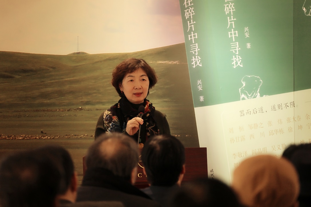 在蒙古族青年馬頭琴演奏家查日蘇悠揚(yáng)的《黑駿馬》樂曲聲中,劉恒、閻晶明、許紅海、王巨才、葉梅、賀紹俊、關(guān)仁山、陳琛、蘇茹婭、興安上臺為《碎片中的尋找》一書揭幕。