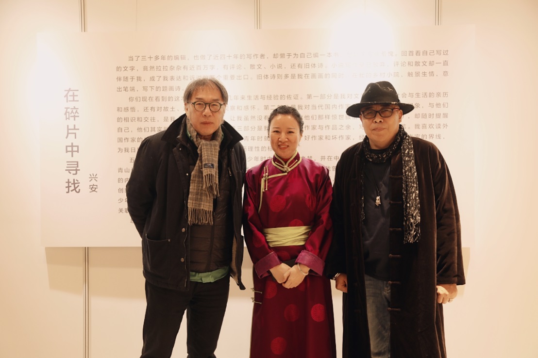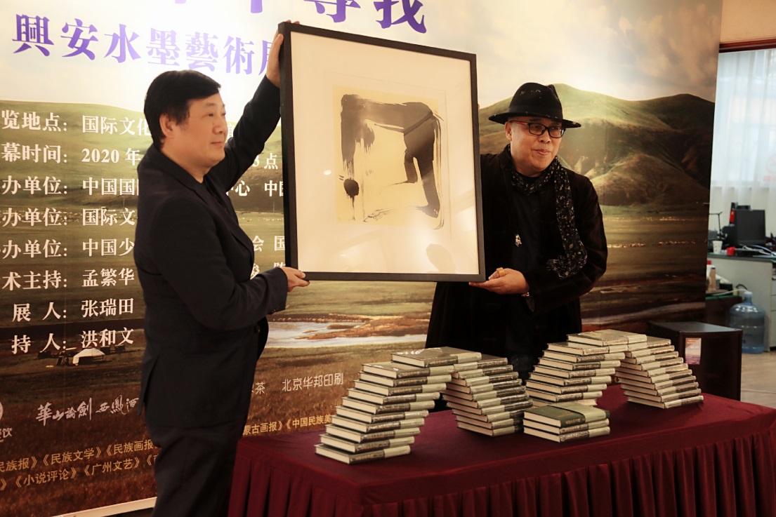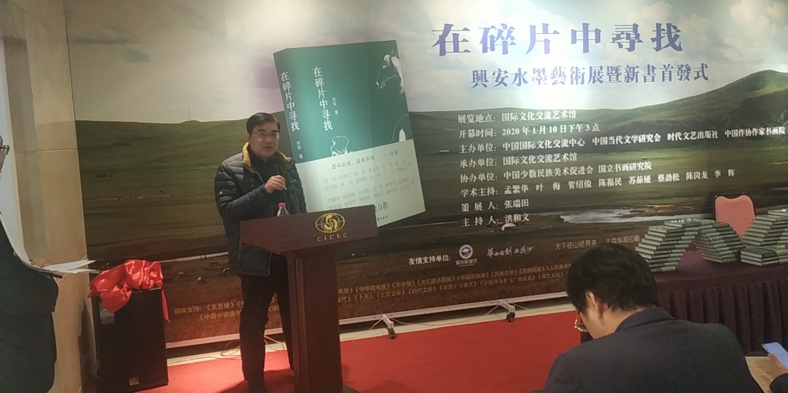 1月10日,由中國國際文化交流中心、中國當(dāng)代文學(xué)研究會、時代文藝出版社、中國作協(xié)書畫院主辦,由中國少數(shù)民族美術(shù)促進(jìn)會、國立書畫院協(xié)辦的“在碎片中尋找——興安水墨藝術(shù)展暨新書首發(fā)式”在國際文化交流藝術(shù)館隆重舉行。中國作家協(xié)會副主席、黨組成員閻晶明,中國國際文化交流中心秘書長許紅海,全國政協(xié)常委、中國作家協(xié)會副主席、北京作家協(xié)會主席劉恒,中國作協(xié)書畫院院長王巨才,中國國際文化交流中心“一帶一路”文化藝術(shù)基金管委會主任陳君,中國作家協(xié)會主席團(tuán)委員、中國散文學(xué)會副會長葉梅,中國當(dāng)代文學(xué)研究會副會長、沈陽師范大學(xué)特聘教授賀紹俊,中國作家協(xié)會辦公廳主任李一鳴、中國當(dāng)代文學(xué)研究會副會長兼秘書長、中國社科院文學(xué)研究所研究員陳福民、時代文藝出版社社長陳琛,北京師范大學(xué)特聘教授、詩人西川,河北省作家協(xié)會主席關(guān)仁山,魯迅文學(xué)院常務(wù)副院長徐可,中國國際文化交流中心副秘書長王學(xué)珺,作家出版社原總編輯黃賓堂,內(nèi)蒙古美術(shù)家協(xié)會副主席、內(nèi)蒙古藝術(shù)學(xué)院教授蘇茹婭,中國少數(shù)民族美術(shù)促進(jìn)會名譽(yù)會長郭正英,中國作協(xié)書畫院常務(wù)副院長張瑞田,青島華夏文化藝術(shù)研究院院長楊志鵬,北京市民族聯(lián)誼會秘書長張學(xué)斌,北京航天航空大學(xué)文化與藝術(shù)傳播研究院院長蔡勁松,中國民族畫院副院長李輝,北京正視文化有限公司總經(jīng)理閆志杰,內(nèi)蒙古作家協(xié)會名譽(yù)主席鄧九剛,詩刊編委、畫家宗鄂,中國化工作家協(xié)會副主席趙晏彪,內(nèi)蒙古藝術(shù)學(xué)院副教授孫玉寶,中國作家協(xié)會創(chuàng)聯(lián)部民族處處長陳濤,中國煤礦作家協(xié)會常務(wù)副主席徐迅,《小說選刊》編輯部主任顧建平,人民文學(xué)出版社《新文學(xué)史料》主編郭娟,《北京晚報(bào)》墨緣版主編郭晉麗,《人民美術(shù)家》主編韓慧萍以及作家、藝術(shù)家、新聞媒體金紅偉、老村、敢夫、巴義爾、李麗香、任月華、劉以林、車前子、林金榮、曹心源、西蒙、劉豫華、程青、朱智忠、王炬、吾要、寶貴敏、駱慶、萱萱、張健、烏云格日勒、陳薇、楊鷗、王曉君、賀鵬飛、化方、謝樹峰、金春姬、那日松、潘海波、高領(lǐng)、曙光、華小克、張曉智、楊晶、徐彬、于立方、肖寧、特木爾、若然、呂玲、劉奎章、祝雪俠、孫小野、王賀東、丁奔亮、宋辰辰、商曉藝、趙云等近百人。