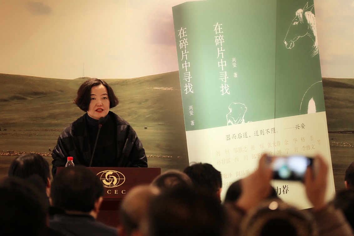 興安向在場的所有嘉賓和親朋好友表示感謝。他說:今天這么多人來,不僅是為我而來,它更像是為了一個文學(xué)和藝術(shù)的美好聚會。我當(dāng)了差不多30年的編輯,卻對自己出書沒有特別的渴望。后來偶然間魯迅文學(xué)院文叢給我出了一本散文集,之后經(jīng)常會有讀者和朋友向我要書。前不久山東北方書友會將我20年來主編或撰寫的一大摞書寄給我,并且他還從網(wǎng)上收集了我的畫,做成小冊子讓我簽名。我沒見過這位朋友,我突然感覺我寫作、畫畫并不完全是一個人的事情,因?yàn)橛幸恍┠憧赡芏疾恢啦徽J(rèn)識的人在遠(yuǎn)處默默地關(guān)注著你、欣賞著你,甚至愛著你,這特別讓我感慨和感動。前兩天我和蒙古族表演藝術(shù)家斯琴高娃老師有過交流,她說:碎片其實(shí)就是你的心,你的點(diǎn)點(diǎn)滴滴,到哪里哪里就會明亮,就會有色彩。她對碎片的解讀,對我的鼓勵讓我感動。