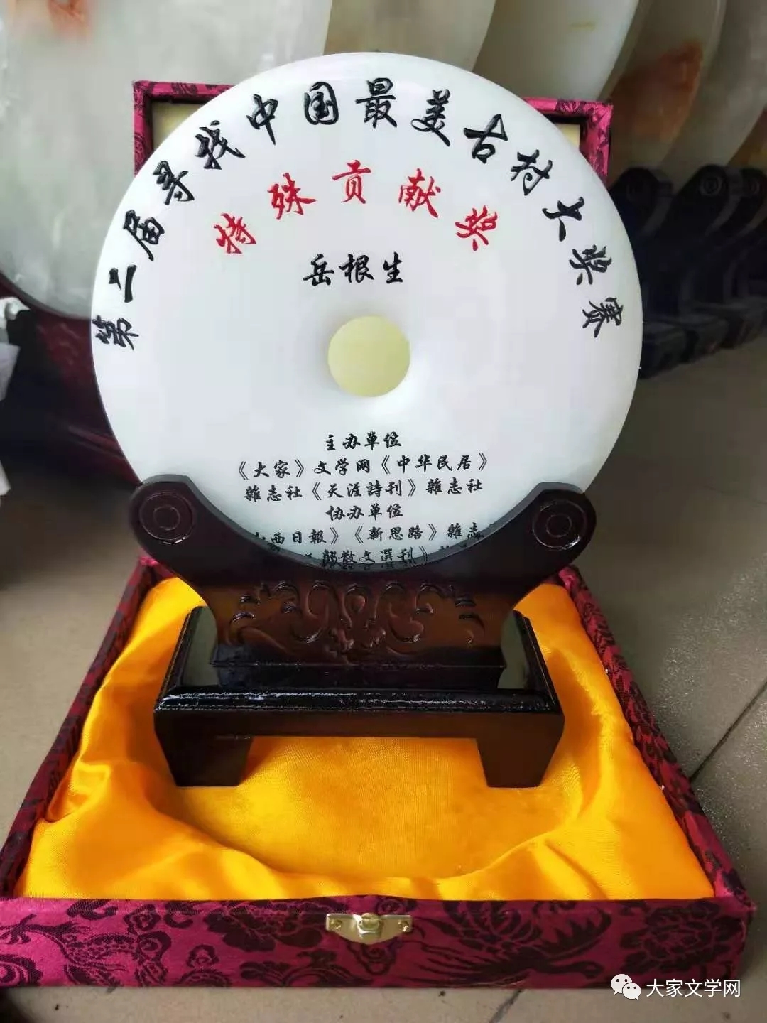 一等獎三名,名家書畫作品、岫玉獎牌(微刊將分期展示)、榮譽證書