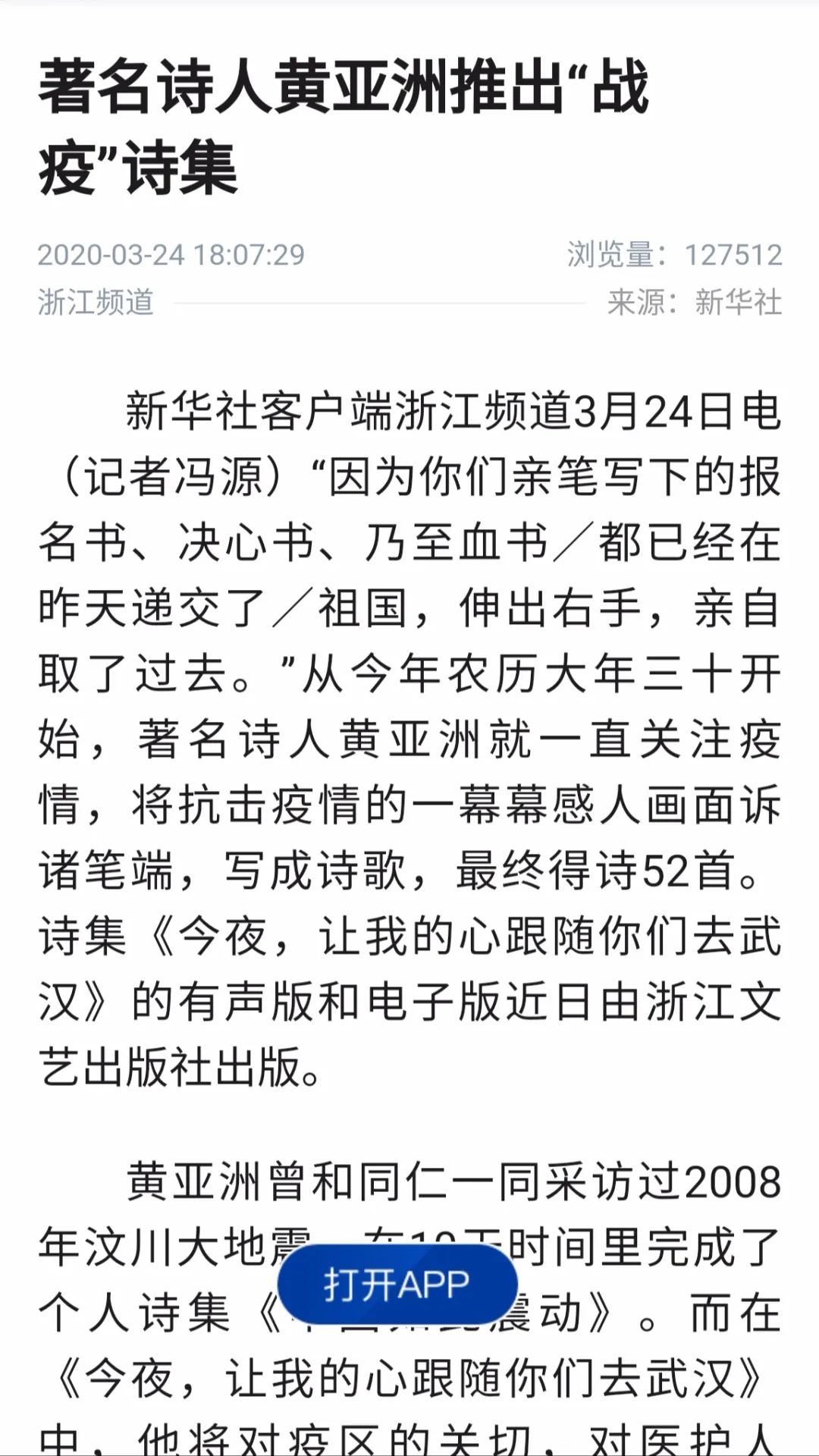 核心提示: 3月29日下午,詩人黃亞洲新近出版的抗疫主題詩集《今夜,讓我的心跟隨你們?nèi)ノ錆h》,在杭州拱墅區(qū)一家已經(jīng)開業(yè)的咖啡廳舉行研討。