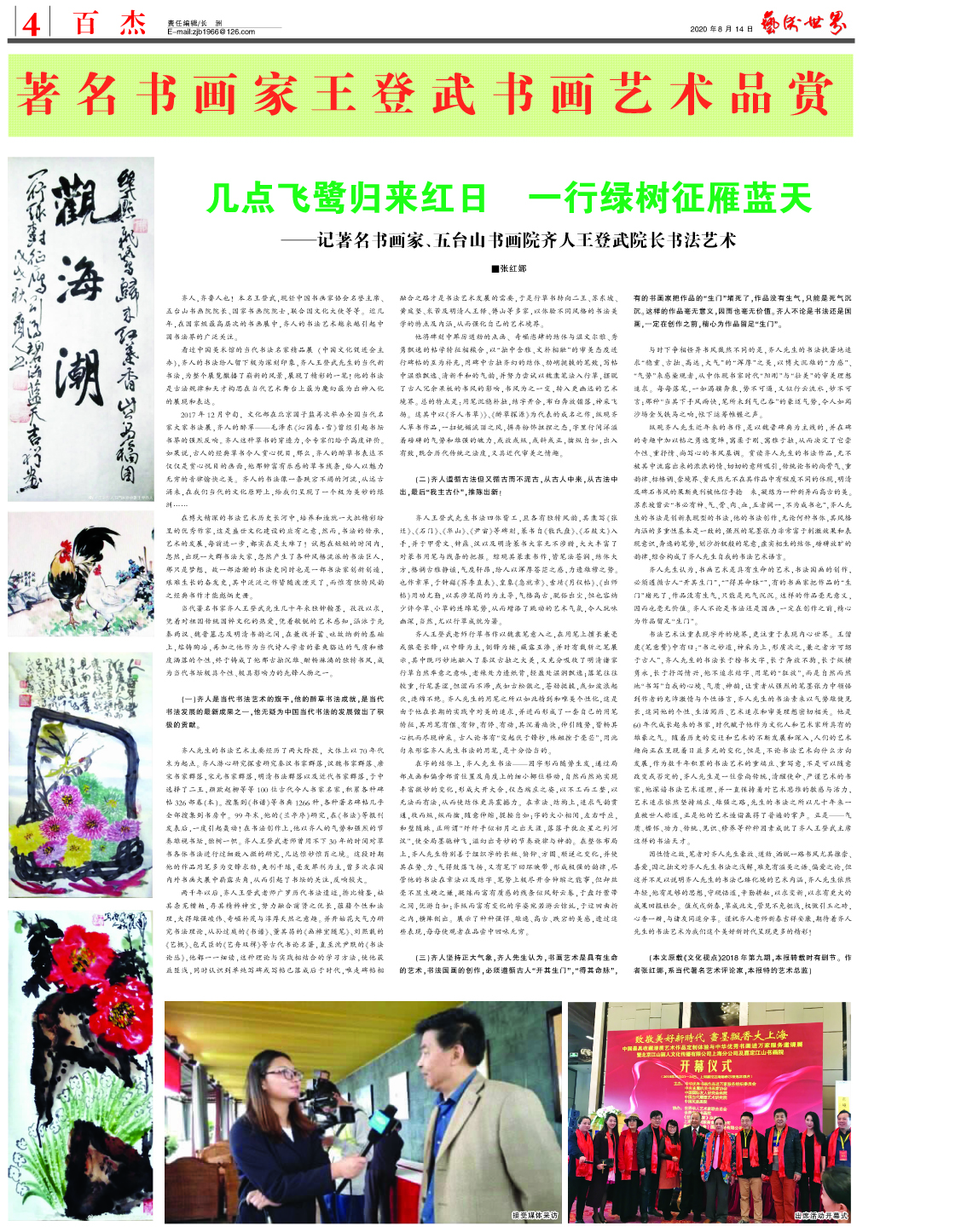 2020.8.14總第103期 2020-08-29 作家報華文作家網(wǎng),作家報 核心提示:鄧向陽《中國紅色美術史》首發(fā)式暨學術研討會;推介書法家張弓、書畫家王登武。 免責聲明:文章內(nèi)容不代表華文作家網(wǎng)_作家報立場,華文作家網(wǎng)_作家報不對其內(nèi)容的真實性、完整性、準確性給予任何擔保、暗示和承諾,僅供讀者參考,文章版權歸原作者所有。如本文內(nèi)容影響到您的合法權益(內(nèi)容、圖片等),請及時聯(lián)系華文作家網(wǎng)_作家報,我們會及時刪除處理。