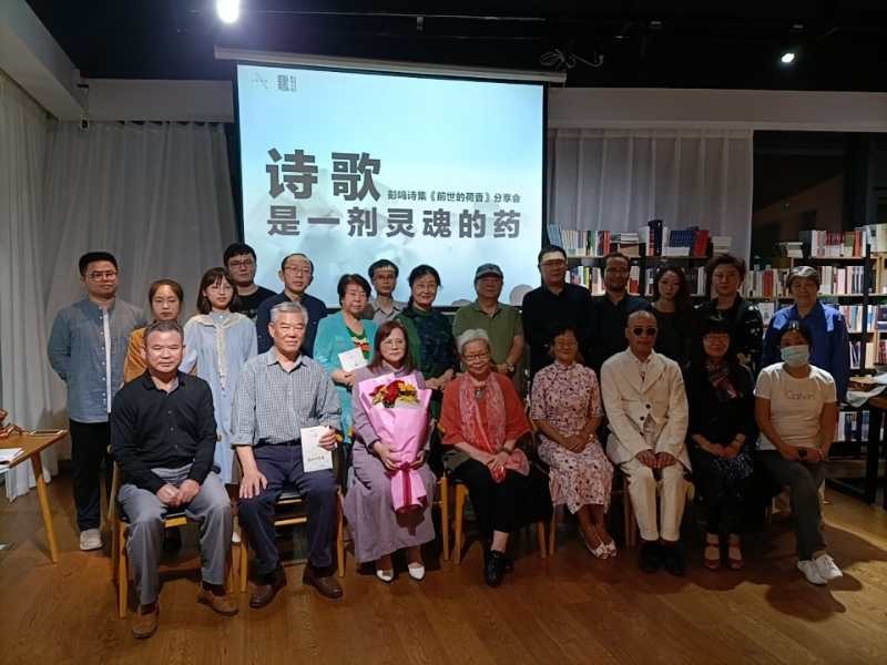 9月26日,“詩歌是一劑靈魂的藥——彭鳴詩集《前世的荷香》分享會”在北京雍和書庭舉行。全國人大常委會辦公廳研究室原主任、中國民主法制出版社原總編輯程湘清書面致辭。原國務(wù)院參事,第九和第十屆全國政協(xié)常委、經(jīng)濟學家、書法家任玉嶺錄制視頻祝賀。《方圓》雜志執(zhí)行主編、詩人邰筐,天津社會科學院文學研究所副研究員、評論家王士強,詩人安琪,朗誦藝術(shù)家郭延芬,中藝名書畫院院長劉栓辰,中國絲綢集團中絲帝錦公司原總經(jīng)理助理任潔,書法家劉廣迎、石英寶,畫家張靖安、王志鴻、彭寶儀、董志惠,行為藝術(shù)家、慈善家黃學禮,中礦拍賣公司總經(jīng)理祁麟,媒體人黃尚恩,首都師范大學中國詩歌研究中心研究生張福超、彭杰、周如意、朱俊青等參加分享會。