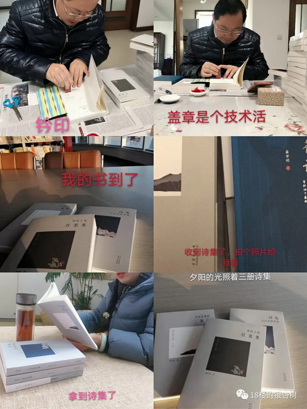 詩(shī)歌合集《龔學(xué)明的詩(shī)》(上中下三冊(cè))新近出版的消息傳出后,購(gòu)藏的詩(shī)友和讀者很多,他們遠(yuǎn)在新疆、貴州、山西一、湖北、廣東等地和江蘇本省江南江北,紛紛給作者龔學(xué)明留言,表達(dá)喜歡,“龔老師您好,您寄來(lái)的四本詩(shī)集(含贈(zèng)送的詩(shī)集《爸爸謠》)我今天都已經(jīng)收到了,您的詩(shī)非常美好而又耐讀”, “龔老師,我要多看您的詩(shī),學(xué)習(xí)您的寫(xiě)法,然后有空時(shí)也練習(xí)多寫(xiě)一寫(xiě)”。對(duì)于購(gòu)藏者的要求,龔學(xué)明都認(rèn)真對(duì)待,很認(rèn)真細(xì)致地在詩(shī)集上留下的簽名和鈐印。