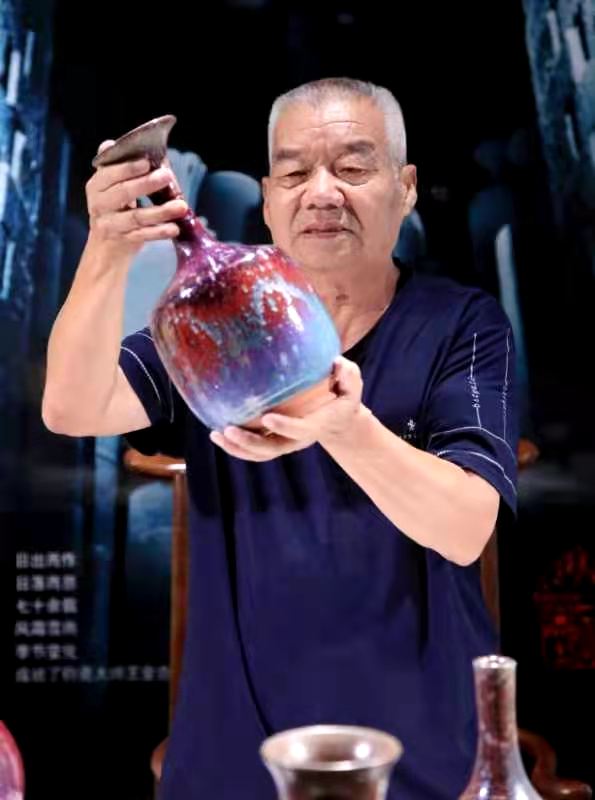 1981年率先研燒出仿宋鈞月白釉、天青天藍(lán)掛紅斑作品;