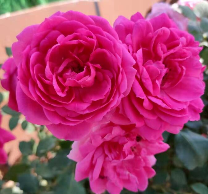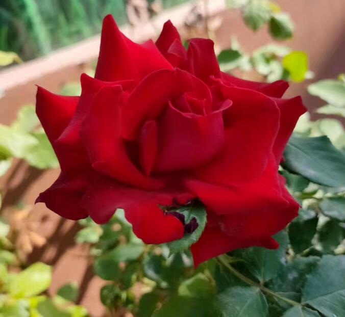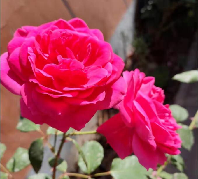 就是這樣一株四季牡丹,在七災八難的熬過了一個寒冷的冬季之后,經(jīng)過春天的催生,在陽春三月的一天早上它竟然開出了一朵鮮艷無比的花兒。那顏色深紅到幾乎發(fā)紫,長長的花莖似乎馱不住它那碩大的花朵微微有些低垂,比去年那朵半開不開蔫兒不拉幾的花兒好看多了。說是牡丹又不像牡丹,它比牡丹的花朵兒小點兒,說月季又不像月季,比月季的花朵大點兒,說扶桑又不像扶桑,我真的沒有見過這樣的花卉,一句話美得無以倫比。可惜花期太短了,早開晚謝而且每天只開一朵。這就足夠了,古人云:室雅何需大,花香不在多。美的東西太多了擠到一塊兒壯觀是壯觀,但也少了一支獨秀的風雅和情趣,于是我拿起手機拍下了這張艷照,發(fā)到朋友圈兒與朋友共享,并抑制不住內心的喜悅和激動,隨手寫道:“你的嬌娜雖然只有一天,但在我的心里卻無比燦爛"。 打開第一朵花兒以后,每天早晨起床后的第一件事就是跑到陽臺上去看花兒。隔了幾天它竟然開了兩朵,我也拍照也發(fā)朋友圈兒,寫上:“絕代美雙嬌,相擁并蒂開”。又過了幾天它又開了三朵,我還拍照還發(fā)朋友圈兒,寫上“花壇三姐妹,競相比芬芳”。就這樣這棵四季牡丹給我?guī)砹嗽S許多多的驚喜和靈感。