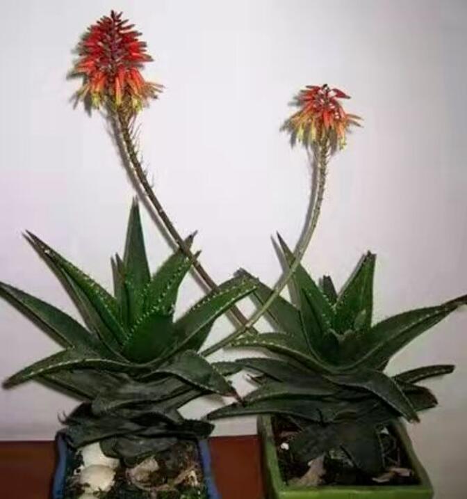 和仙人棍兒較勁兒的還有那盆蘆薈,養(yǎng)了多年也就是一盆綠色植物,我也常把下邊的葉子剪下來,用手一揉便能擠出一些汁液抹在臉上用于潤膚。就在我一心看四季牡丹的時候,一天突然發(fā)現(xiàn)在它的葉片之間長出兩股綠色的枝條,頭頂著兩個綠色花苞,而且那生長的速度也相當快,像箭一般一天能長十幾公分,然后開出一串串金黃色的小喇叭花兒,雖不是太美卻也有幾分雅致。這讓我想起了多年前好友朱冀濮老弟為我做的一首詩:“老槐樹上看風景,看的是根根纏繞的蕂。十八丈井下看人生,看的是坎坎坷坷的繩。馬路邊上看世道,看見猴子奪過鞭。窗戶臺上看蒼茫,看見蘭箭斜出行”。于是我又拍了照片,把冀濮先生的最后兩句詩配上,雖不是蘭花,倒也貼切。但也只開了一年,至今還是紋絲不動的一盆綠色植物。