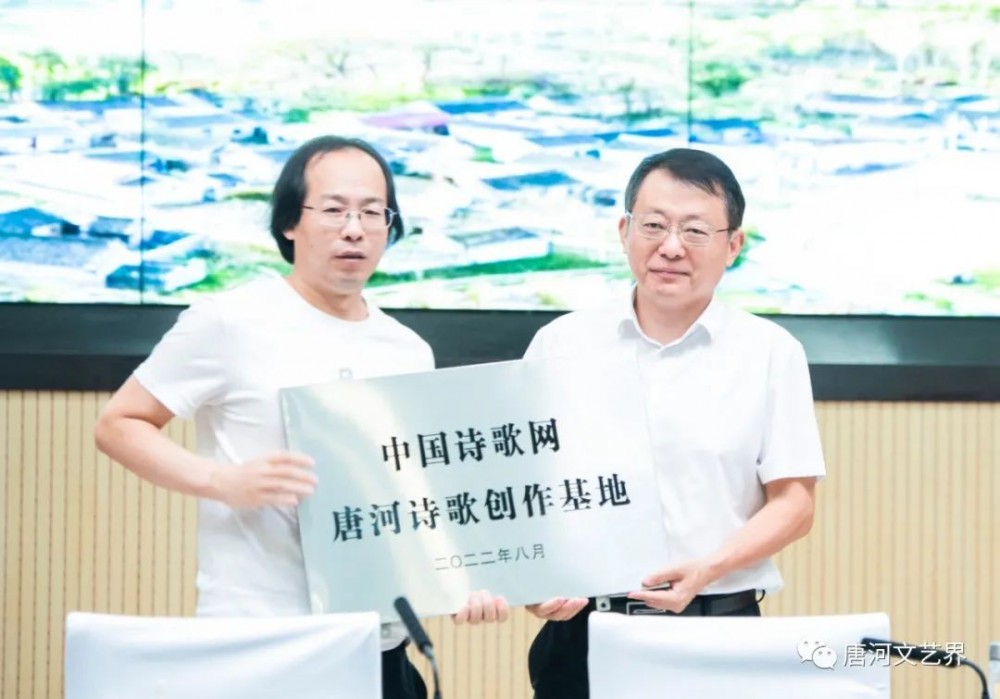 與會人員共同觀看了唐河宣傳片,《詩刊》社副主編霍俊明為中國詩歌網(wǎng)唐河創(chuàng)作基地授牌,縣委書記賀迎接牌。