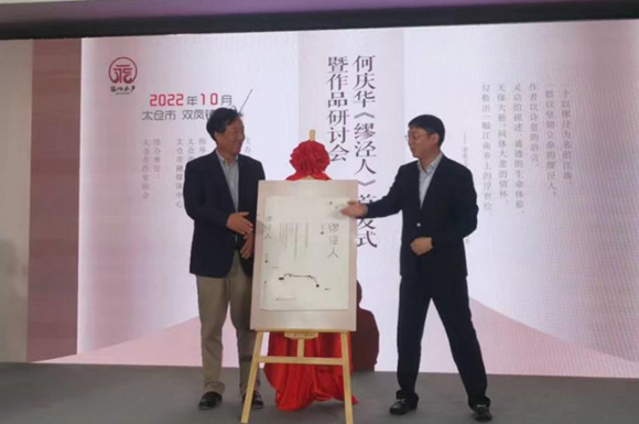 江蘇省作協(xié)副主席、蘇州市作協(xié)主席王堯教授與太倉(cāng)市宣傳部長(zhǎng)查焱為《繆涇人》首發(fā)式揭幕。