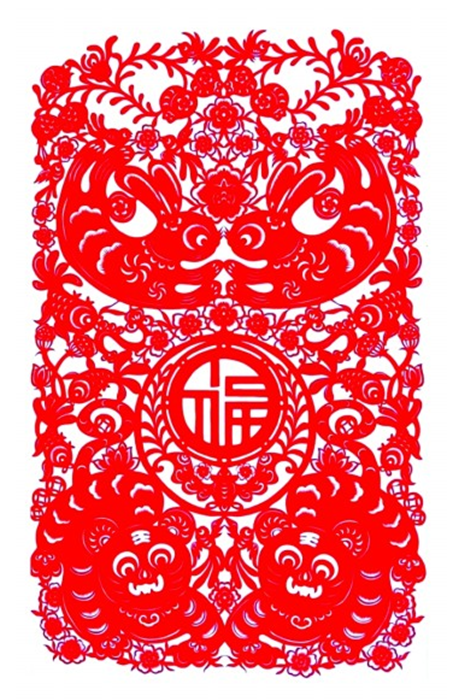 福虎迎兔(剪紙) 王楠楠