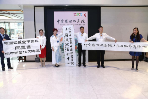 中宣盛世國際書畫院執(zhí)行院長、中國大眾文化學(xué)會名人書畫藝術(shù)發(fā)展委員會主任、中國楹聯(lián)學(xué)會中宣盛世文化藝術(shù)院院長張玲玉和中國書協(xié)會員、上海書協(xié)會員、上海大師書法研究院院長韓煜共同為中宣盛世國際書畫院上海文化藝術(shù)中心揭牌
