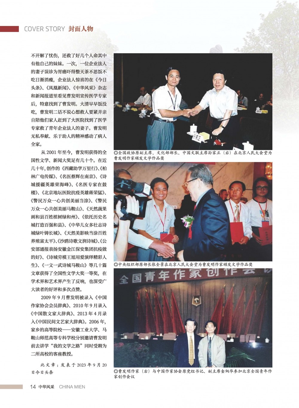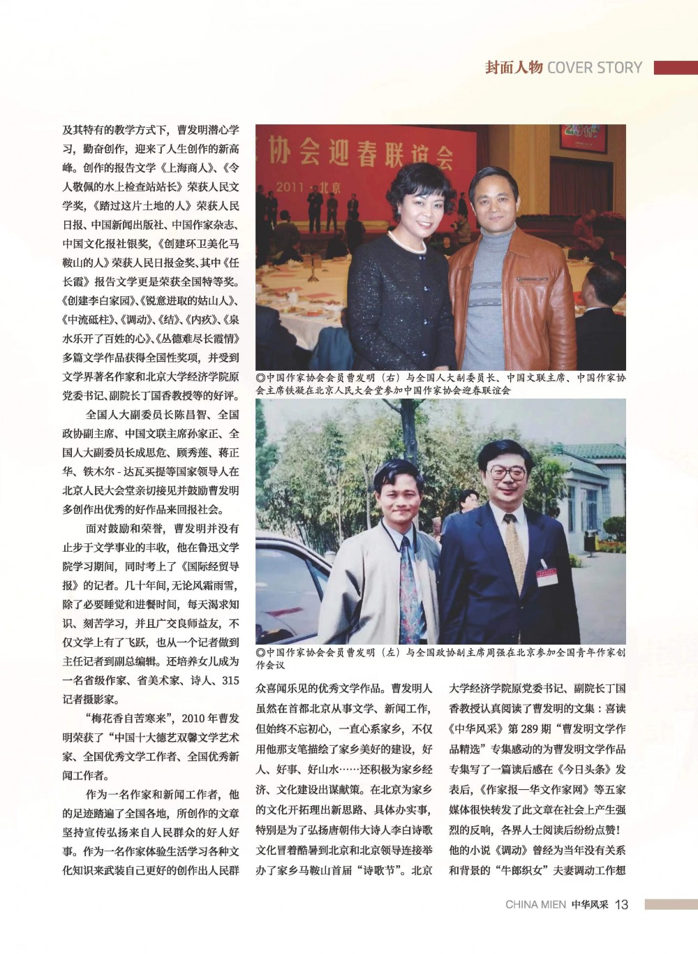 “梅花香自苦寒來”,2010年曹發(fā)明榮獲了“中國十大德藝雙馨文學藝術(shù)家、全國優(yōu)秀文學工作者、全國優(yōu)秀新聞工作者。