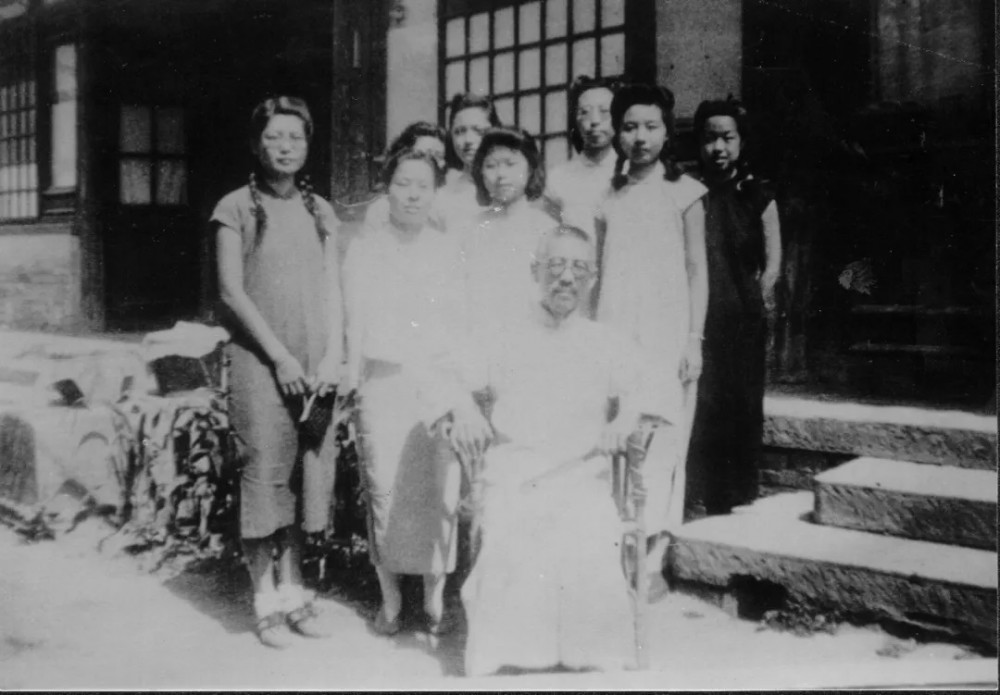 1943年與顧隨先生及同班同學(xué)在顧隨先生家中合影。顧先生后右側(cè)一是葉嘉瑩。(南開大學(xué)供圖)