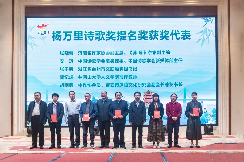 文章節(jié)義金廬陵,萬里詩風迎客來。11月9日,由《詩刊》社、江西省作家協(xié)會、北京師范大學中國當代新詩研究中心指導,中國詩歌網(wǎng)、中共吉安市委宣傳部主辦,吉安市文聯(lián)、中共吉水縣委、吉水縣人民政府承辦的“廬陵詩韻 誠齋萬里——首屆楊萬里詩歌獎”頒獎典禮,于江西吉安吉水縣成功舉行。