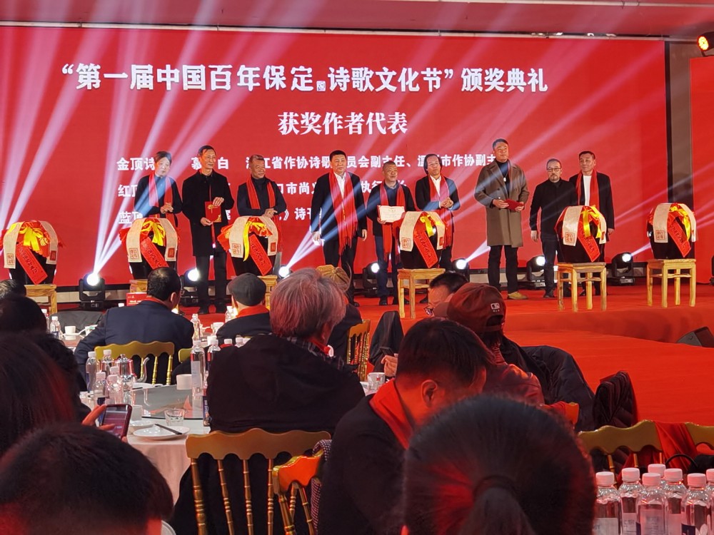今年7月,為傳承和弘揚(yáng)中華優(yōu)秀傳統(tǒng)文化,推動(dòng)“百年保定”酒的文化影響力,促進(jìn)京津冀詩歌協(xié)調(diào)發(fā)展,助力保定和雄安新區(qū)新時(shí)代文化再攀高峰,《詩刊》社、中國詩歌網(wǎng)、雄安保府酒業(yè)有限公司、中國市場(chǎng)學(xué)會(huì)京津冀產(chǎn)業(yè)發(fā)展研究院等單位聯(lián)合舉辦“百年保定·全國詩歌征文大賽”,面向社會(huì)公開征稿,共收到參評(píng)作品一萬多首,涉及現(xiàn)代詩、古體詩詞以及歌詞。經(jīng)過《詩刊》社、中國詩歌網(wǎng)編輯的初評(píng)以及七位終評(píng)委的投票,評(píng)出金頂詩人獎(jiǎng)5名:北野(河北)、慕白(浙江)、鄒黎明 (江蘇)、羽微微 (廣西)、張牧宇(吉林)金頂詩人獎(jiǎng)5名,紅頂詩人獎(jiǎng)10名:阿劍(甘肅)、畢俊厚 (河北)、安知雀(廣西)、萬世長(陜西)、王文海(山西)、王喜(甘肅)、阿沛(廣東)、陶少亮(湖北)、程楊松(江西),以及桑寒(河北)等藍(lán)頂詩人獎(jiǎng)20名、優(yōu)秀詩人獎(jiǎng)20名。
