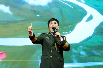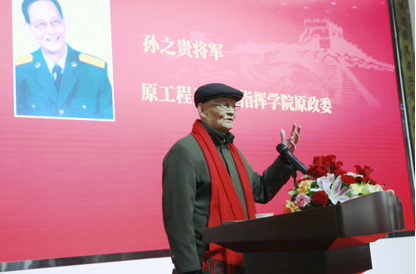 開(kāi)幕式由祝學(xué)軍和雙語(yǔ)主持人朱丹共同主持;86歲高齡老將軍、崔根峰將軍戰(zhàn)友、原工程兵工程指揮學(xué)院政委孫之貴少將發(fā)表了熱情洋溢的講話,他說(shuō):“崔根峰將軍不僅是一名老兵,而且是一名好兵,他不僅是一名將軍,而且是一位文武兼?zhèn)涞膶④姡裉煳矣?span>“人書(shū)俱老,德藝皆馨”八個(gè)字來(lái)形容他一點(diǎn)也不為過(guò),崔根峰首先是一位武將,是經(jīng)過(guò)戰(zhàn)爭(zhēng)鍛煉而成長(zhǎng)起來(lái)的將軍。他1963年入伍,1964年參加全軍大比武,取得了全軍第二名的好成績(jī),受到了葉劍英元帥的親切接見(jiàn),1979年時(shí)任團(tuán)政委的他,和團(tuán)長(zhǎng)一起帶領(lǐng)一個(gè)團(tuán)參加了對(duì)越邊境自衛(wèi)還擊作戰(zhàn),榮獲集體三等功;他又是一名儒將,國(guó)防大學(xué)首屆畢業(yè)生,在《解放軍報(bào)》等刊物上發(fā)表文章130余篇,出版了《實(shí)試感悟》一文;同時(shí)他還是著名的軍旅書(shū)法家,為電視劇《亮劍》等10余部影視劇題寫(xiě)劇名,并在書(shū)法藝術(shù)界享有極高的聲譽(yù)。”