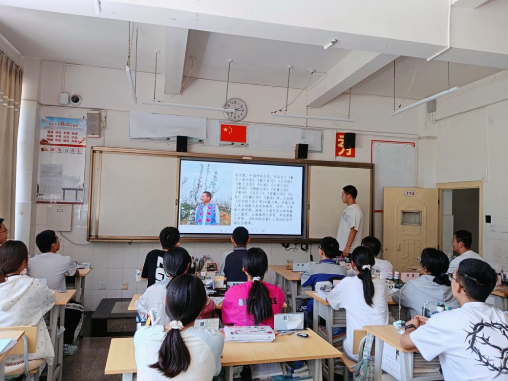 4月20日下午,語墨文學(xué)社在學(xué)思樓114室開展了師生“共讀鄉(xiāng)土”主題朗誦會。社長李雨泉同學(xué)通過查找資料介紹了本土作家李光彪老師,并給大家分享了總體閱讀感悟。之后師生依次朗誦了《寸草暉》里的相關(guān)篇目,馬雪峰老師以沉穩(wěn)的聲線詮釋《苦刺花的墓地》,張留云同學(xué)以清澈的嗓音演繹《衣服里的歌》,王俊杰同學(xué)聲情并茂地朗讀了《相菌歡》……那些關(guān)于土地、親情與成長的文字,化作綿綿春雨,潤濕了每一位聆聽者的眼眶。這場跨越代際的文學(xué)對話,讓閱讀成為傳承的儀式,更讓“寸草之心”照見“三春之暉”。最后文學(xué)社指導(dǎo)教師馬雪峰飽含深情地總結(jié)到:“我們的教室有瑯瑯書聲,走廊有書香浮動,青春與經(jīng)典相遇的每一個瞬間,都是對‘讀書日’最詩意的詮釋。正如博爾赫斯所言:‘天堂應(yīng)該是圖書館的模樣。’而在語墨文學(xué)社,我們正以閱讀為磚瓦,構(gòu)筑著人間最純真的文學(xué)天堂。”