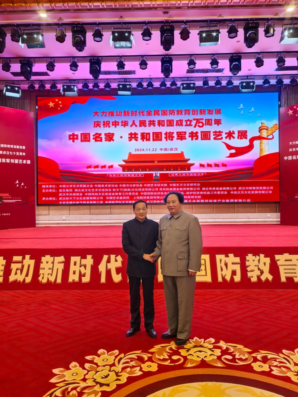 祝天華先生主導籌備的(2018年)“慶祝建國75周年·中國名家·共和國將軍書畫藝術展”,組建包含28位書畫家和9位將軍的專業(yè)團隊,首創(chuàng)“將軍+名家”雙軌模式,強化了軍地文化融合的標桿效應。