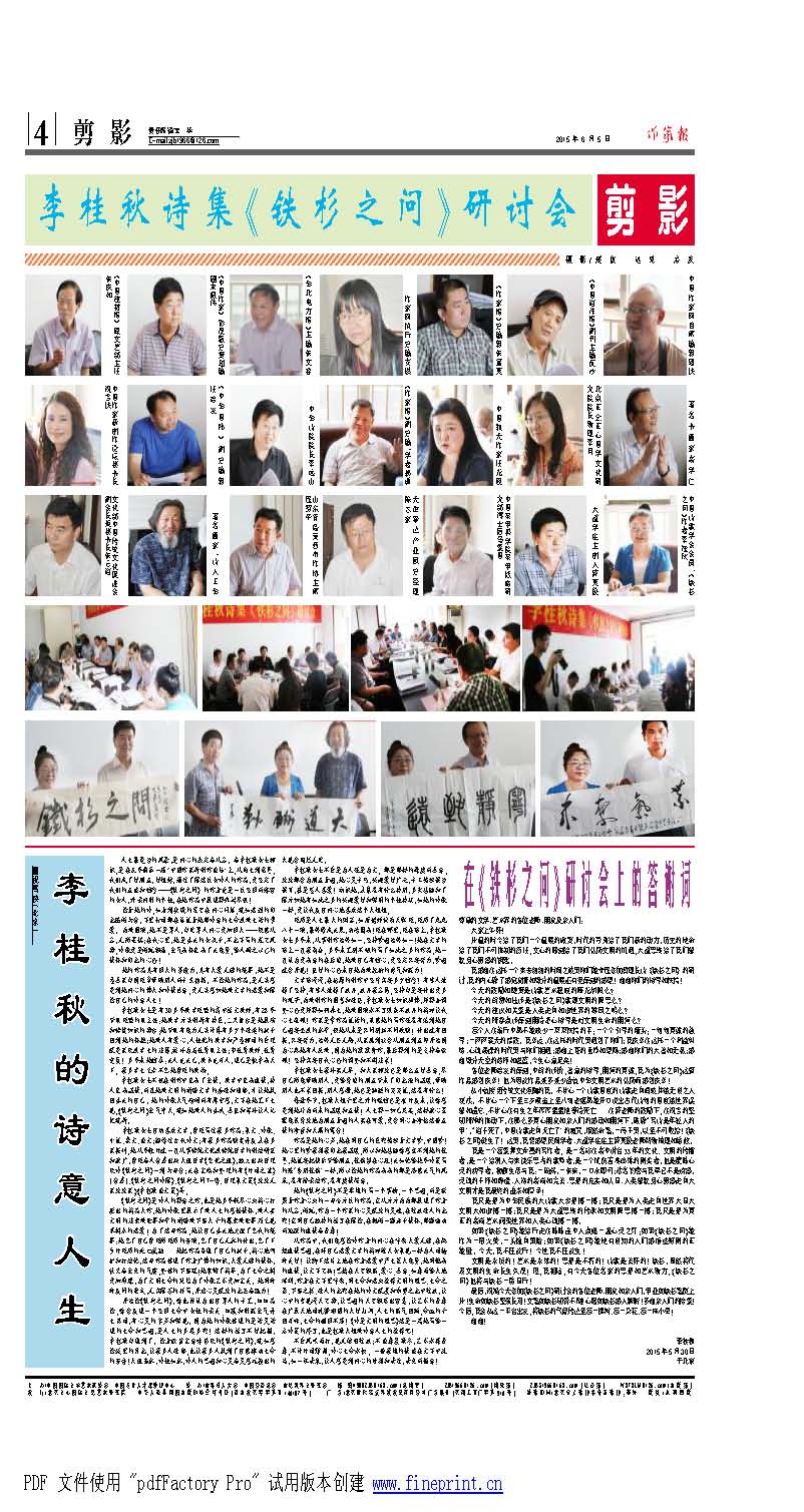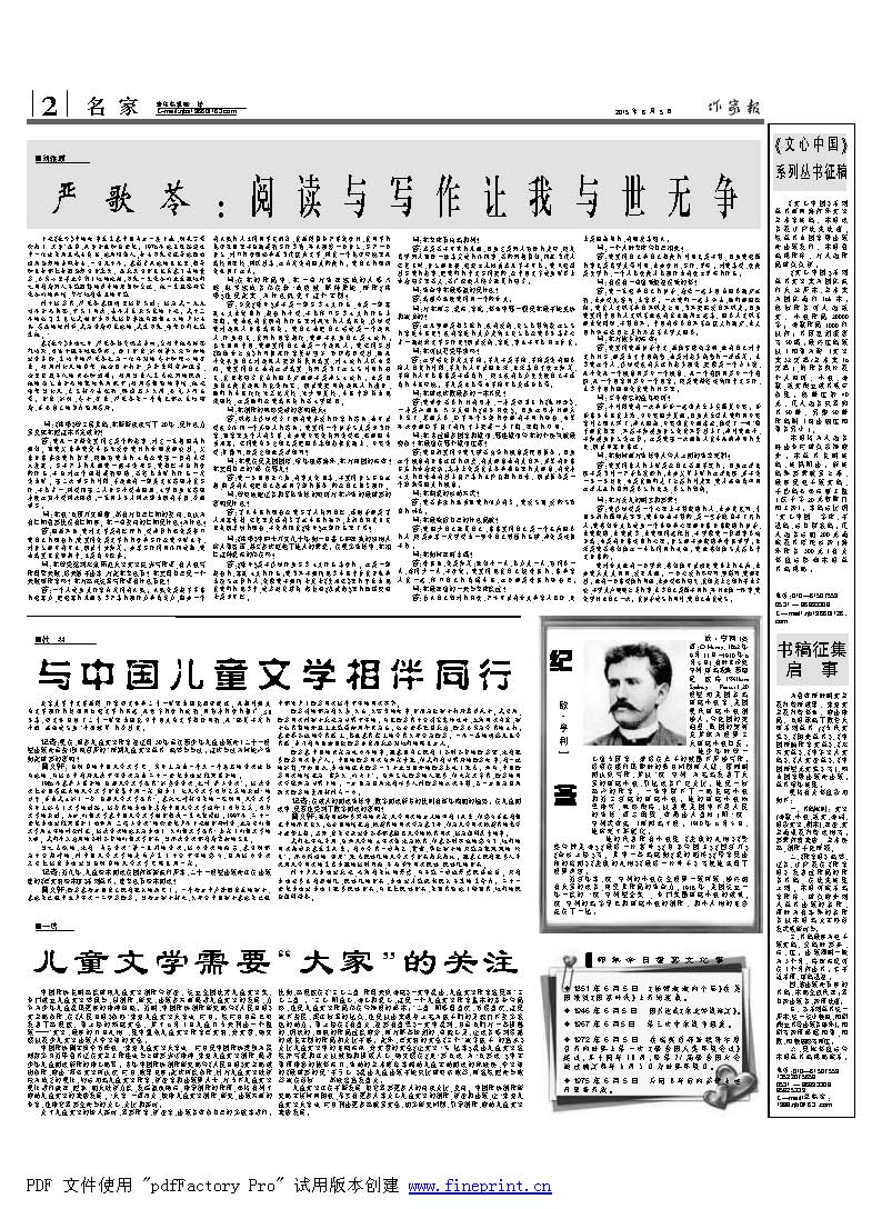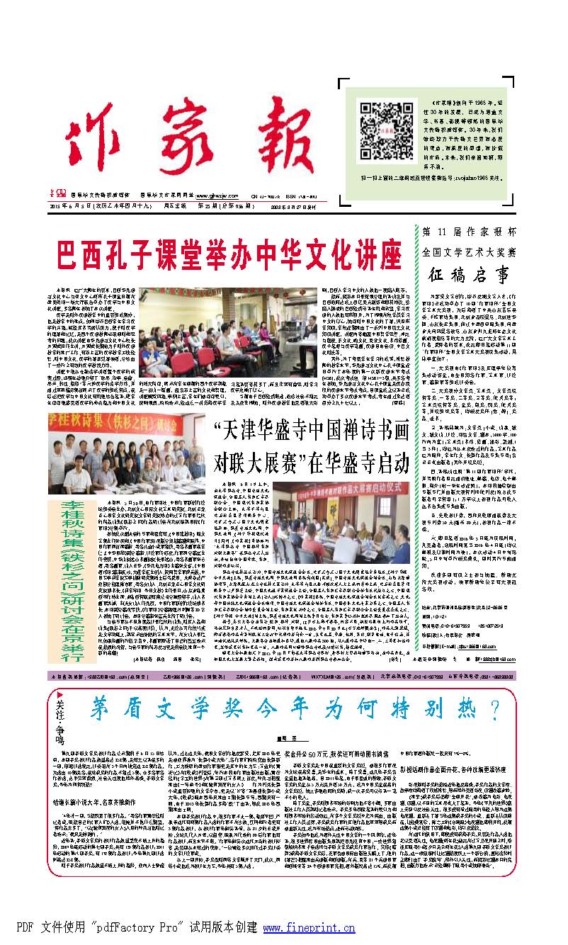6月5日《作家報》圖片版 2015-06-06 作家報作家報 免責(zé)聲明:文章內(nèi)容不代表華文作家網(wǎng)_作家報立場,華文作家網(wǎng)_作家報不對其內(nèi)容的真實性、完整性、準確性給予任何擔(dān)保、暗示和承諾,僅供讀者參考,文章版權(quán)歸原作者所有。如本文內(nèi)容影響到您的合法權(quán)益(內(nèi)容、圖片等),請及時聯(lián)系華文作家網(wǎng)_作家報,我們會及時刪除處理。