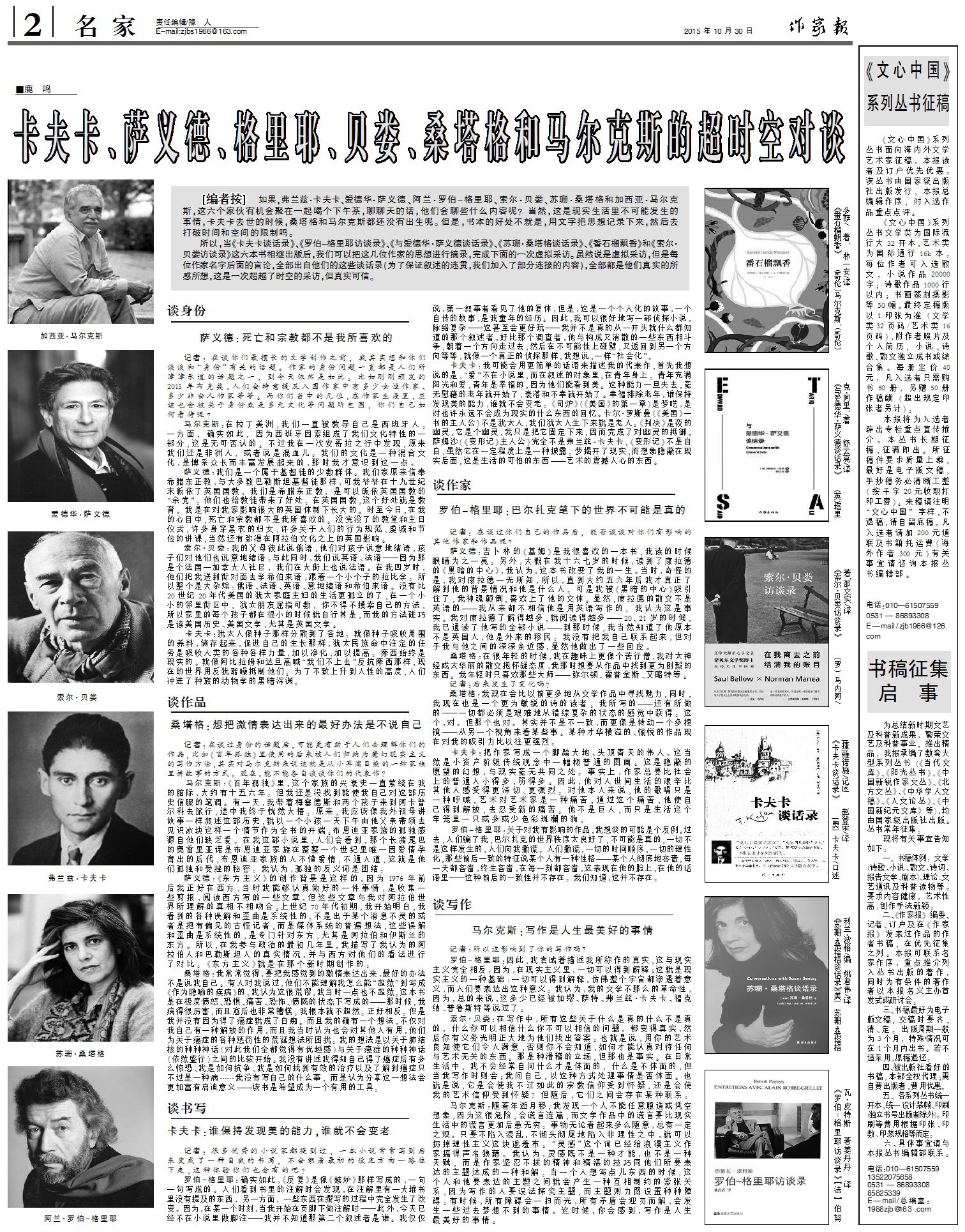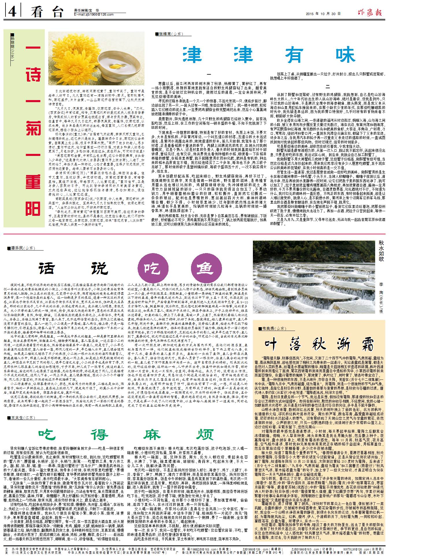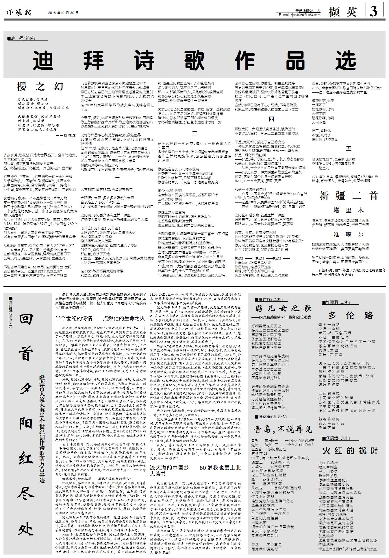 10月30日《作家報》出版,歡迎訂閱、合作 2015-10-30 未知國際華文作家網(wǎng) 免責(zé)聲明:文章內(nèi)容不代表華文作家網(wǎng)_作家報立場,華文作家網(wǎng)_作家報不對其內(nèi)容的真實性、完整性、準(zhǔn)確性給予任何擔(dān)保、暗示和承諾,僅供讀者參考,文章版權(quán)歸原作者所有。如本文內(nèi)容影響到您的合法權(quán)益(內(nèi)容、圖片等),請及時聯(lián)系華文作家網(wǎng)_作家報,我們會及時刪除處理。