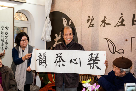 會前我們采訪了主辦方天舟文化公司董事肖志寧先生,他說:天舟走進社區(qū)是符合時代要求的,素瓷雪色縹沫香,何似諸仙瓊?cè)餄{。今天我們就以茶為媒論傳統(tǒng)文化,說茶道、講茶藝、學茶禮、借茶修身、用茶養(yǎng)生。裨益身心,此茶之益生之道;頤養(yǎng)心神,則是茶道之情趣之道。道家學說為茶人的茶道注入了“天人和一”的哲學思想。茶道文化自始便與中國道家思想中的自然觀念相契合,而茶道無疑是“自然之作”的一部分。接下來著名畫家陳士奎,為我們分享了茶與自然情趣的關系,他講到“酒壯英雄膽,茶助文人思”,茶能觸發(fā)文人創(chuàng)作激情,提高創(chuàng)作效果。茶與書法,雖然屬于兩種不同的門類,但在諸多方面,兩者卻有著一些共同的特點,如對環(huán)境的講究,器具的賞用,用水的要求等。北京民族聯(lián)誼會副會長高莉,帶著對民族工作的深厚感情,談到中華民族的深邃茶源與茶緣,中國是茶的故鄉(xiāng),是茶的原產(chǎn)地,也是茶文化的發(fā)源地。人們常說:“日常開門七件事,柴米油鹽醬醋茶。”“古今文人七件寶,琴棋書畫詩酒茶。”可見茶已深入到社會各個階層,在當今的社會,飲茶養(yǎng)生、茶道養(yǎng)生已經(jīng)逐漸成為一種潮流,甚至還出現(xiàn)了“寧可三日無鹽,不可一日無茶。”的飲茶風潮。著名書法家段國強先生為我們講述;了茶與書法的關系,茶與書法的聯(lián)系更本質(zhì)的是在于兩者有著共同的審美理想、審美趣味和藝術特性,兩者以不同的形式,表現(xiàn)了共同的民族文化精神。也正是這種精神,將兩者永遠地聯(lián)結(jié)了起來。